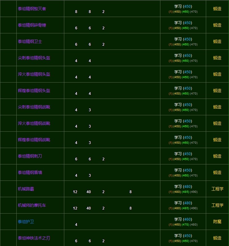 80级巫妖王之怒怀旧服里,泰坦精钢锭能用来制作不少物品。想知道相关物品的网址吗?这里有一个:http://db.178.com/wow/cn/item/37663.html#reagent。