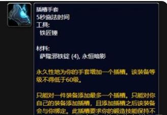 工程学专业到了80级的时候,能制作超级加速器,还能制作机械路霸坐骑呢。超级加速器是手套附魔,所有输出职业都得有这个附魔。它有啥效果呢?就是有一定几率让急速等级提高340点,而且这个效果能持续12秒。
