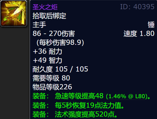 在WLK怀旧服的P1阶段,有两把226级别的法系武器。其中之一就来自25人NAXX(纳克萨玛斯)的克尔苏加德掉落。这把武器可不得了,它对于治疗来说,那就是最佳的奶锤,也就是所谓的BIS(BiS,Best in Slot,意为同部位装备中的最佳选择)奶锤。而且,它对于元素萨满、鸟德(平衡德鲁伊)、暗牧(暗影牧师)来说,也是非常棒的兵器。有了这一把武器,这些职业的双修问题就能够得到解决。