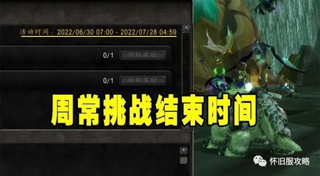 另外,最新周常挑战啥时候结束呢?截止到7月28日就结束了。这就意味着,到了29号的时候,CD又要更新了。于是啊,有玩家就很大胆地猜测,怀旧服WLK前夕开放的时间,这不是已经明摆着了嘛。根据之前蓝贴透露的消息,29号的时候就能够开放前夕版本了。