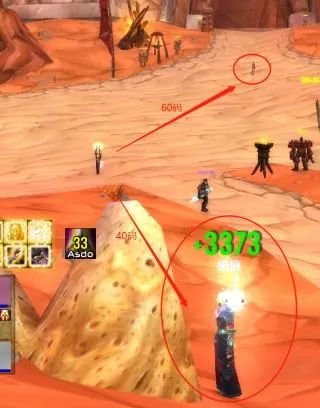 情况五是这样的,要是治疗目标和你的距离在40码及以内,而道标目标与你相距超过60码的话,圣光道标就没法正常运作了。你可以看看下面的图。