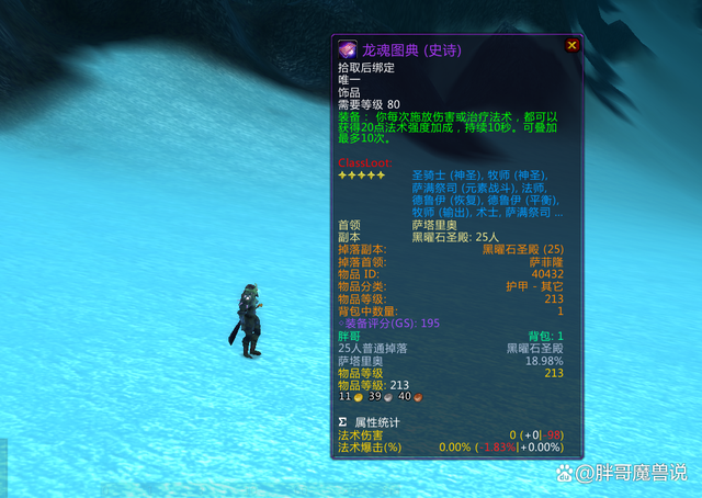 有一件装备,它叫“龙魂图典”。这装备是从黑曜石圣殿掉落出来的。它有个特效,就是每次施放伤害或者治疗法术的时候,都能够得到20点法术强度的加成。这个加成还能往上叠,最多可以叠10层呢。像那种AOE技能的话,还能多次触发这个特效。这么个机制就代表着,这个饰品差不多就等于一直有200点法伤加成在那儿了。