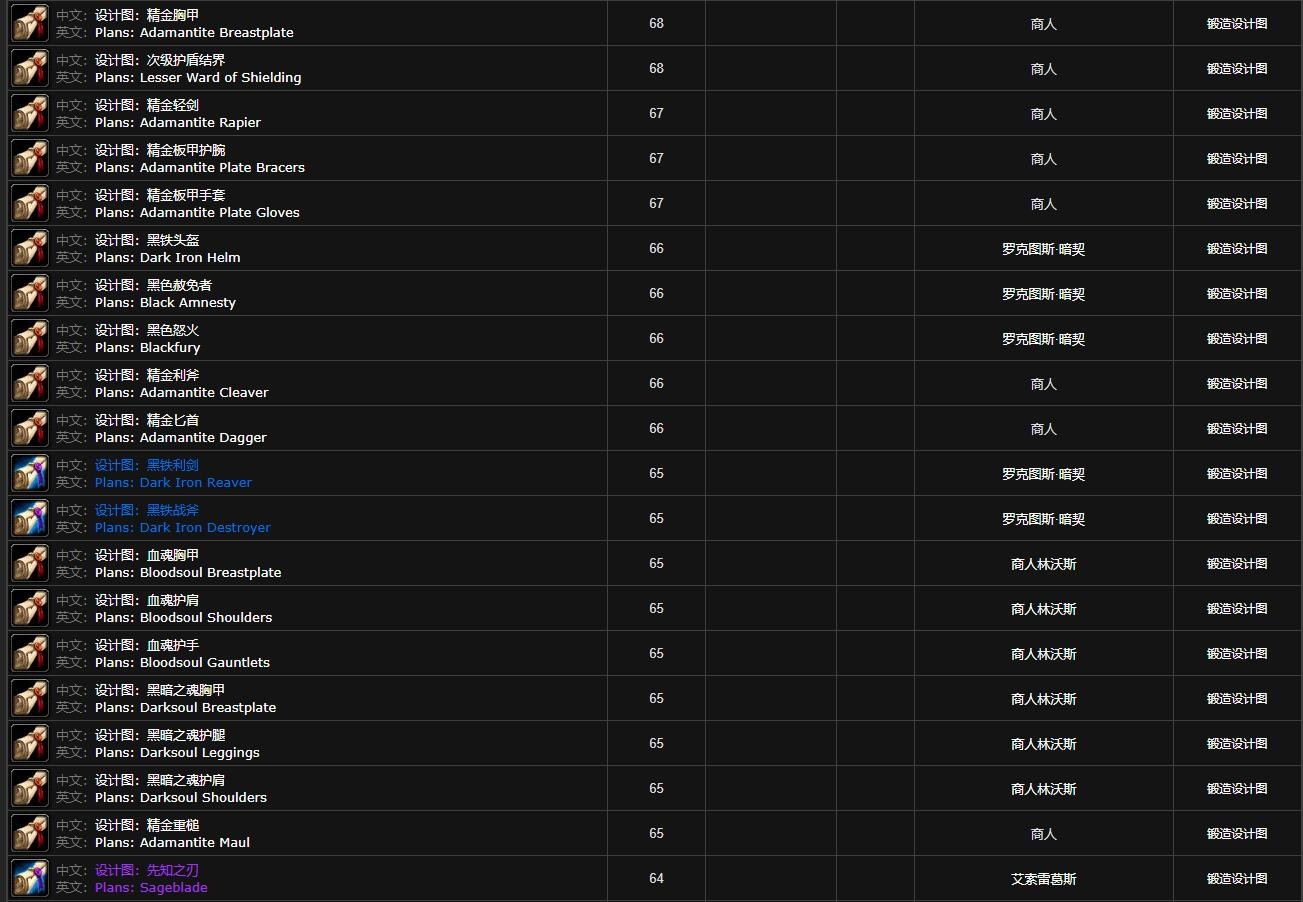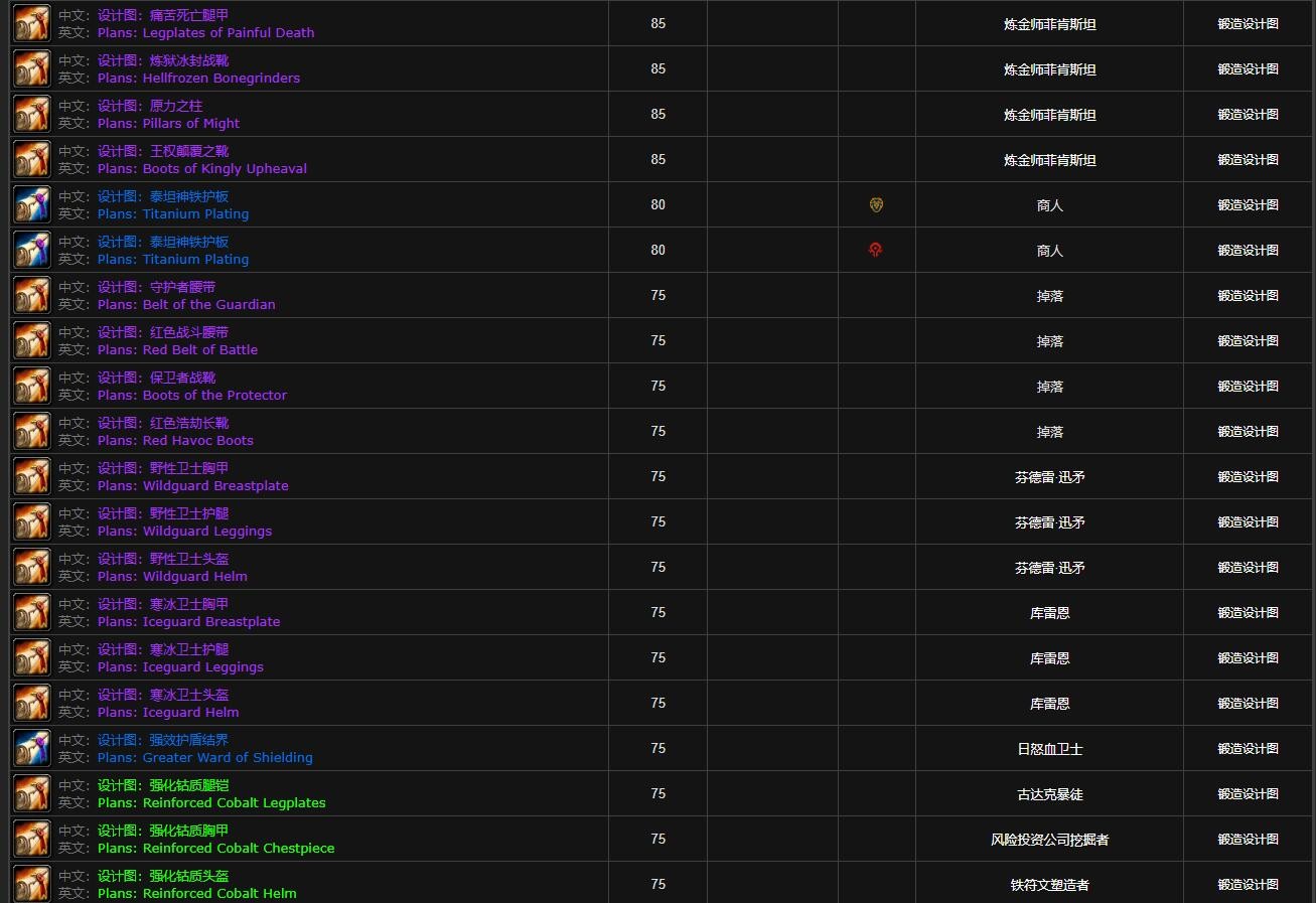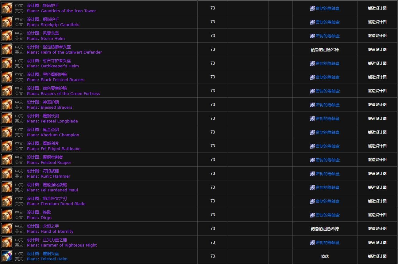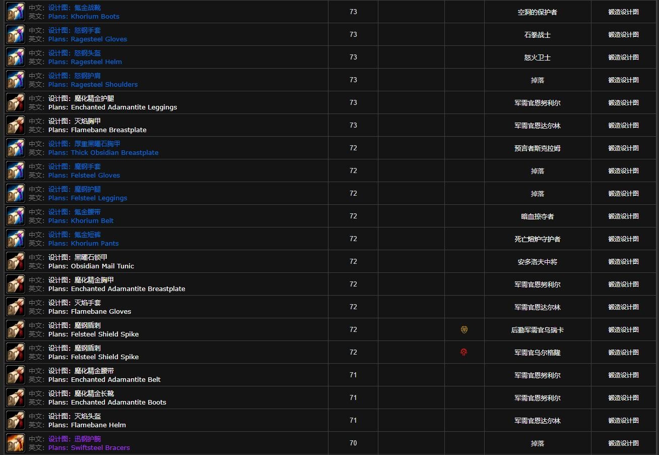 你想知道80级巫妖王之怒(wlk)怀旧服野外掉落的锻造图纸网址吗?那就是http://db.nfuwow.com/80/?items=9.1#0 - 2。