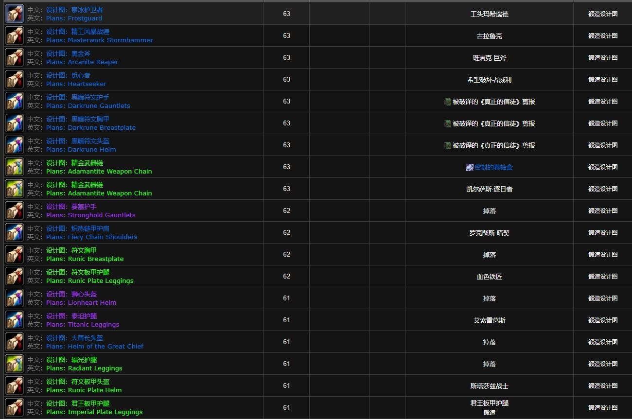 《魔兽世界》的“巫妖王之怒”(WLK)。今天呢,要给大伙讲讲游戏里WLK怀旧服中野外掉落锻造图纸的出处。有些小伙伴还不太明白这事儿,那下面就给大家详细说说具体内容。