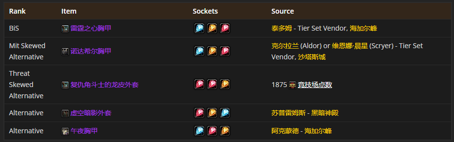 要是挑胸部装备的话,雷霆之心胸甲是首选。至于附魔嘛,胸甲的附魔推荐选“附魔胸甲 - 杰出属性”。