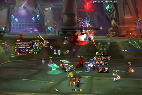 “正常”的国服打法是这样的。P1阶段特别容易,就跟白送一样,除了玩环牧的,其他人都能满状态进入P2。这里有个要注意的点哦。在P1后期的时候,所有的术士得给BOSS施加厄运诅咒。然后呢,指挥得根据BOSS的血量,让DPS停手,等着诅咒的时间到,这样就能保证所有的厄运诅咒在P2刚开始的时候一起爆发,把BOSS的血线一下子压下去,这一点可太关键了。要是野团的DPS不够,就必须得这么来“薅”伤害。 再说说P2,这对野团来说可是个大难关。我给大家说个小窍门,P2里的盘牙精英要是来不及杀掉的话,就不用管它了。让熊和战士把它拉住就行,大家全力去打长脚,只要能保证进P3的时候长脚都被消灭掉就可以了。哪怕场上还留着4个精英也没关系的。