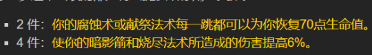 术士的4件套特效是必定会出现的。要是使用牺牲暗毁天赋的话,单体伤害大概能够提升5%呢。
