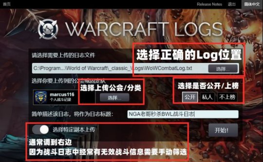 要是以前从未有过上传的经历,那就得手动把游戏里的“高级战斗日志”功能打开。并且,要把World of Warcraft_classic_Logs文件夹下面的WoWCombatLog.txt文件给删掉,这样才能保证日志里没有无用的内容。