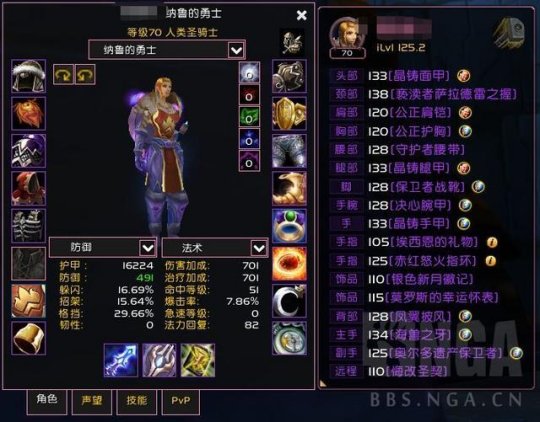 这么操作一番后,法伤能达到701(没有buff的情况下),招架和闪避加起来有32.33%,法术命中率(算上天赋)是7%,护甲值为16224,生命值则是12087点。