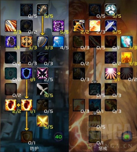 我把天赋改成了0/40/21,这是在稳定伐木之后改的。这么一来,我就没有[神圣使命]和[炽热防御者]这两个天赋了。我琢磨着啊,可能会把[清算]的2点天赋点数挪到[神圣使命]上去呢。