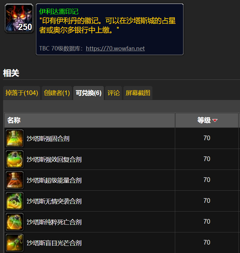 在PTR测试服里,T6团本的小怪有几率掉落伊利达雷印记哦。这个伊利达雷印记能在沙塔斯城的占星者或者奥尔多银行用来兑换沙塔斯合剂呢。这兑换来的合剂,效果和炼金做出来的合剂是一模一样的。不过呢,想要进行兑换的话,得满足一个条件,那就是沙塔尔、塞纳里奥远征队以及占星者或者奥尔多这三个声望都得达到崇拜才行。打个比方说,就好像你要进入一个高级俱乐部,必须要满足多个会员推荐(对应多个声望崇拜)才能获得入场资格(兑换合剂)一样。