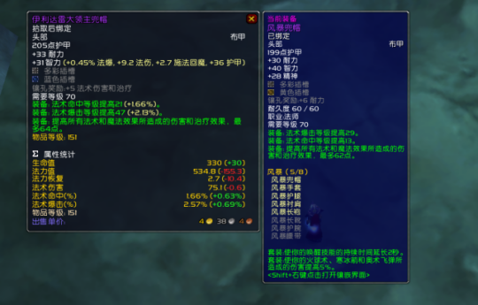 法师的T6头盔和伊利达雷大领主兜帽相比,后者的智力属性更低。而且,伊利达雷大领主兜帽没有精神属性。它的命中属性还更容易溢出呢。所以啊,这个兜帽更适合火法。为啥呢?因为火法对蓝量上限和回蓝的要求不像奥法那么高,奥法很依赖蓝量上限和回蓝,这个兜帽就不太适合奥法了。