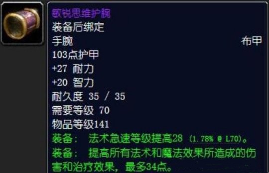 裁缝专业制作的敏锐思维护腕是这个部位的首选。在P3阶段,法师配装的关键是,在命中达标的基础上尽量堆高暴击和法伤。对大多数玩家来说,急速没那么重要,有急速装备固然好,没有也不必着急。为啥呢?因为在这个阶段,在不影响4T6配装框架的情况下,能获取的急速装备数量比较少。要是你的法师已经有心灵风暴护腕了,那我觉得就不用换了,让它接着用就行。