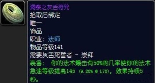 普通法师玩家玩游戏的时候,那肯定会首先考虑灰舌声望的饰品,也就是洞察之灰舌护符。为啥呢?因为散人玩家啊,他们的急速属性往往是不够的,这个护符就能很好地弥补这一缺陷。到了后期,火法暴击的几率比较高,在这种情况下,这个护符能带来的实际收益相当不错呢。古尔丹之颅就别想了,那可不是普通法师玩家能惦记的东西。在前期,如果灰舌声望还没达到崇拜的程度,那继续使用紫罗兰之眼坠饰就比较靠谱,既实用又稳妥。