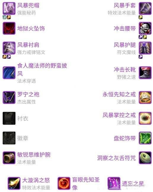 我给出的基本框架包含冲击腰带和冲击长靴这两件套,还有盘蛇饰带,这些都是P2阶段的装备。另外还有4件T6装备,对普通玩家来讲,头部、肩膀、手套和裤子可能是最好的选择,这就意味着要舍弃衣服部位。为啥这么配装呢?你想啊,那些土豪法师肯定是不要T6帽子的,到时候衣服部位的竞争肯定特别激烈。你可别忘了,还有各路盗贼和小德大佬也在这掺和呢。在这个框架里,武器部位得单独说一下。