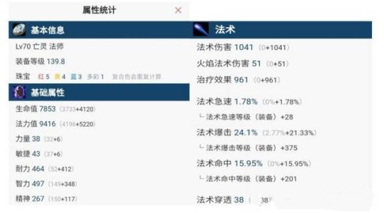 接下来展示的是在前面提到的配装方案下具体的属性情况,这里面有基础属性、扩展属性,还有特殊效果,大家可以看下面的图。