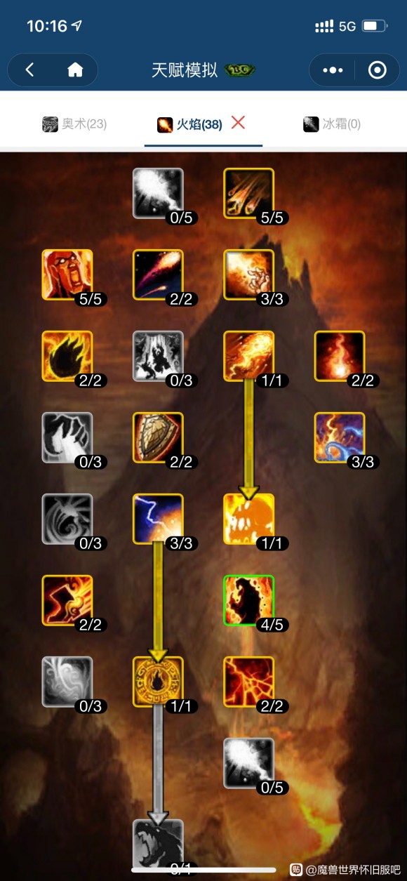 烧这个天赋开启后并不会必定暴击,它有个预热的过程来叠加暴击率。而且啊,这套天赋里没有能增加暴击伤害的天赋。冰法有个俗称叫双穿,它有个基础,就是冰系有个天赋能加成50%的暴击伤害。到了TBC(燃烧的远征版本)的时候,奥系也有这样的天赋了。