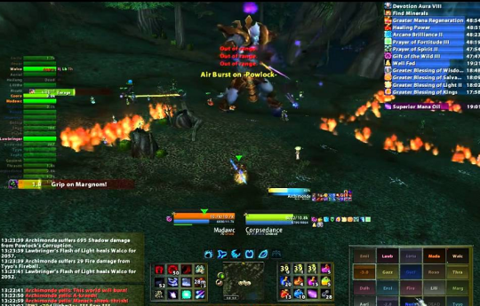 在左边最靠边的地方,那是猎人和小德待的位置。中间呢,则是坦克与阿克蒙德所在之处。而在最右边的位置,是留给治疗和远程DPS的。至于近战嘛,全程用绷带就没问题啦。