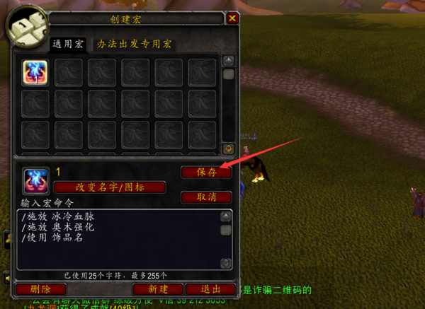 第六步,把宏图标拖到技能栏,就可以使用了。