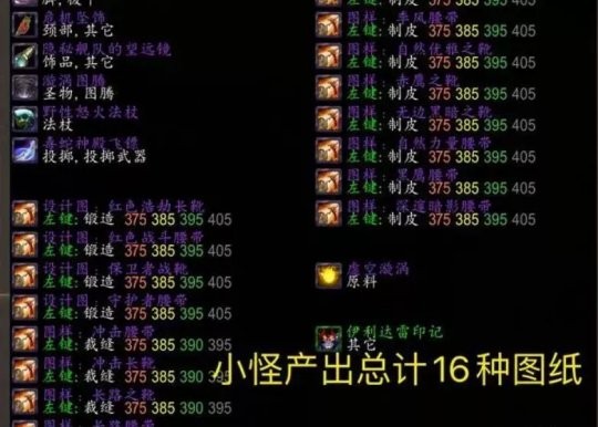 锻造、制皮和裁缝的图纸都有掉落。这里面有BIS(最佳装备搭配)级别的装备可供选择呢。就拿裁缝做的冲击腰带和冲击长靴来说吧,对于法师和术士而言,这些装备的提升率很高,完全能够当作阶段BIS级装备来用呀。