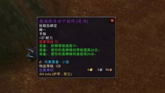 风暴要塞里的小怪一共会掉落6件史诗级别的装备。这里面有个戒指,叫提瑞斯法安宁指环,这个戒指对战士坦克和骑士坦克来说,可是阶段性毕业的装备呢。