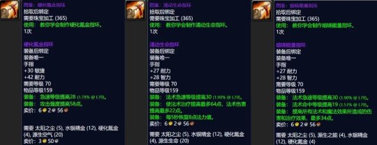 有三款珠宝加工出来的戒指,它们的副属性都是急速。法系的DPS和治疗戒指,就属性而言,那都是达到毕业级别的。要是有钱的话,可一定要做这两款戒指。而物理戒指呢,因为没有破甲属性,所以需求程度相对比较低。