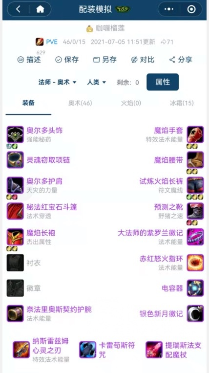 为啥不用法术打击呢?主要是智力太低了,还没有多彩孔。对奥法来讲,法术打击最多也就P1阶段能用用。到P2的时候啊,如果要保持魔焰套三件,又想凑齐2T5,那就必然得打破法术打击的套装效果,这么干性价比可就太差了。