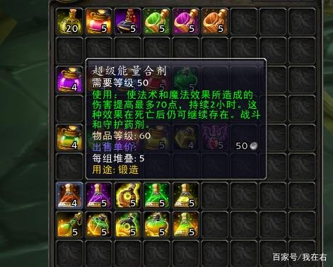 盲目光芒合剂能让奥术、神圣、自然法术的伤害提升80点呢。这个合剂比起超能合剂,在伤害提升数值上要多出10点。它比较适合奥法、防骑、元素萨还有鸟德这些职业来使用。