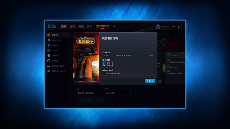 先把战网桌面应用下载下来,然后用战网通行证去登录。登录之后呢,在左边的菜单里找到《魔兽世界》并选择它。