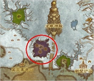 法纹布要在龙骨荒野的蓝龙圣地清洗。在那儿的时候,得小心避开小怪。它的具体位置是这样的……