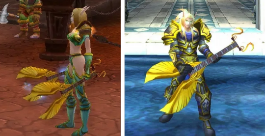 后来啊,牛头人酋长乐队里还有个成员呢。他有件武器,暴雪把这武器做成了玩家能用的版本,这武器就是凤凰王的金曦琴。这琴和之前提到的奥金利斧差不多,都有个使用效果。啥效果呢?就是玩家用了之后能变身成穿着T6套装的血精灵圣骑士,看起来可帅气了。在黑市上,这琴也常常被人用顶价拍走,特别抢手。