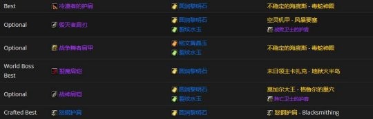 肩部装备首选冷漠者的护肩,附魔推荐强力复仇铭文