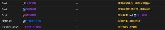 要是选腿部装备的话,危险意图护腿是首选,而附魔的话,虚空毒蛇腿甲片比较值得推荐。