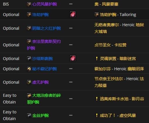 要是挑选手腕装备的话,心灵风暴护腕是首选。至于附魔嘛,推荐选择附魔护腕 - 法术能量。