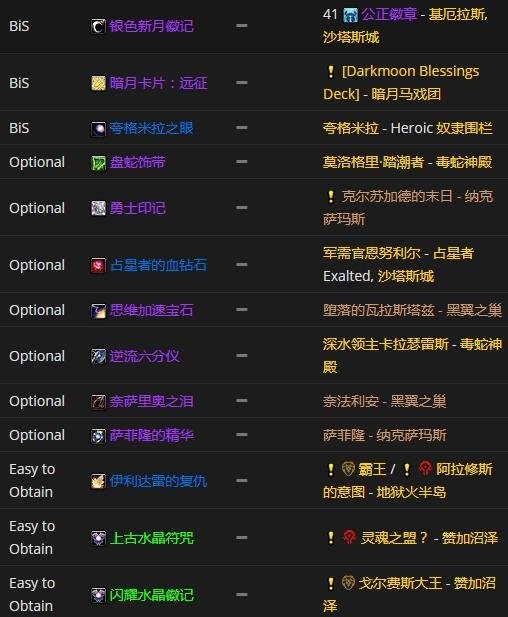 肩部装备首选提瑞斯法护肩,附魔推荐强力宝珠铭文。