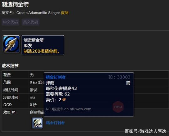 产物使用起来不需要工程学技能。每次用右键点击,就能制作出一组精金钉刺者,其秒伤加成达到43呢,而且总共可以使用五次。原材料成本大概也就2金币左右,这么算的话,这可比去买塞纳里奥远征队售卖的弹药划算太多了。比如说,要是经常使用这种弹药的话,长时间下来,使用这种自制的精金钉刺者能省不少钱呢。