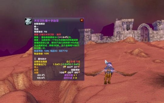 天空卫队银十字勋章的常驻属性是34点暴击。在TBC版本里,有个属性兑换公式,差不多1点暴击能等同于2点攻强。这样算的话,34点暴击就相当于68点攻强了。牌子饰品的常驻攻强是72点,所以天空卫队银十字勋章的常驻攻强只比牌子饰品少4点。