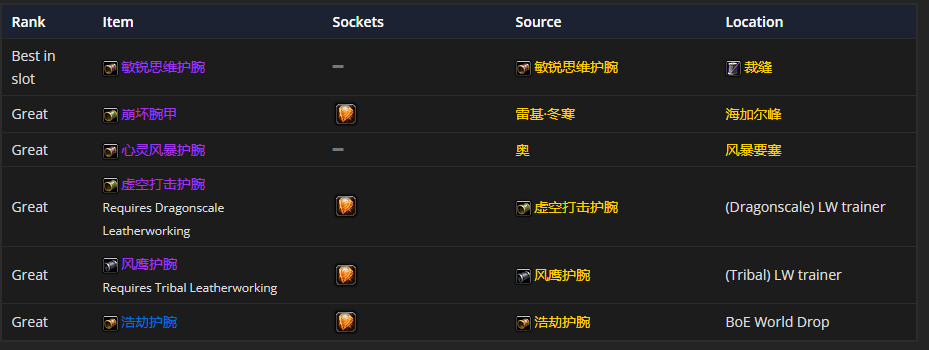 要是选手腕装备的话,敏锐思维护腕是首选。至于附魔嘛,“附魔护腕 - 法术能量”是比较推荐的。