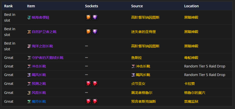 要是挑选脚装备的话,唤海者便鞋是首选。至于附魔嘛,推荐使用附魔长靴 - 野猪之速。
