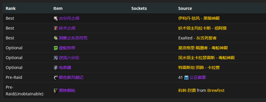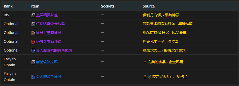 头部装备首选伊利达雷大领主兜帽,附魔推荐强能雕文