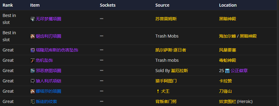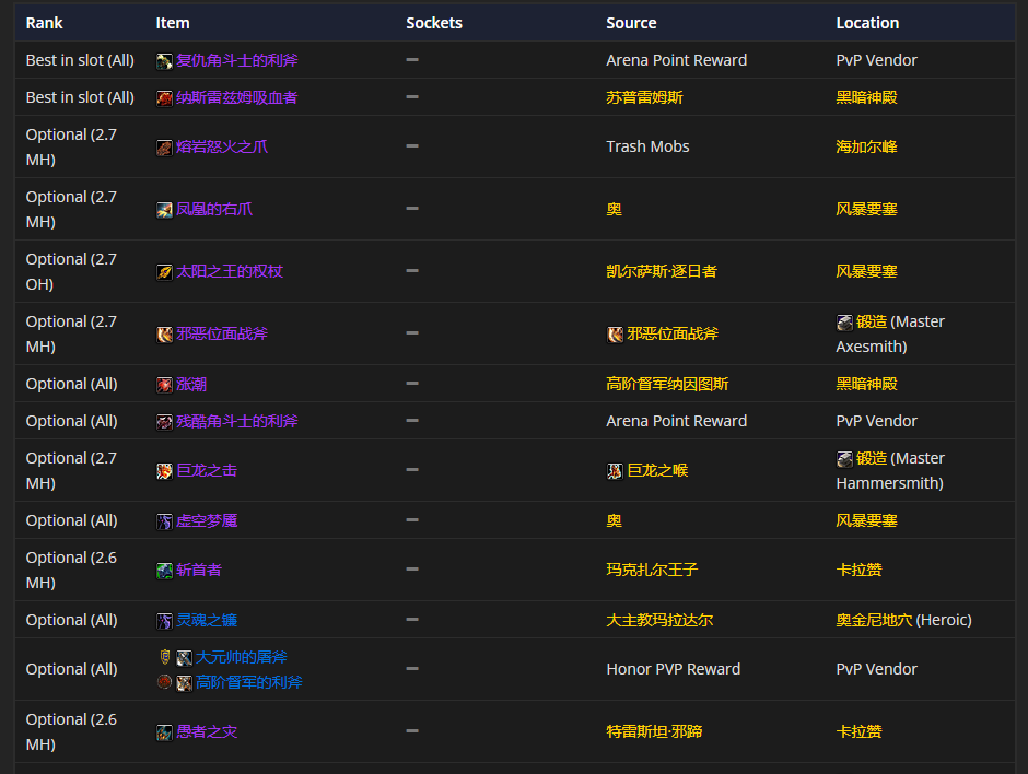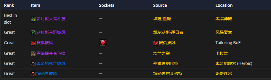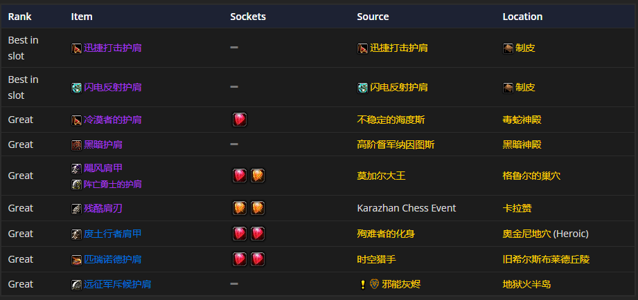 肩部装备首选迅捷打击护肩,附魔推荐天灾的威严