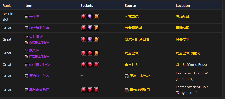 要是挑选胸部装备的话,午夜胸甲是首选。而说到附魔呢,胸甲的附魔推荐“附魔胸甲 - 杰出属性”。