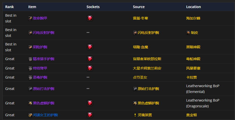 要是挑选手腕装备的话,致命护腕是首选哦。至于附魔嘛,附魔护腕 - 强壮是比较推荐的。