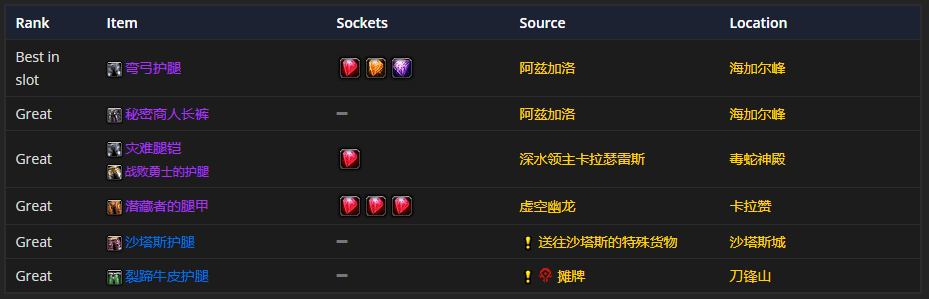 要是挑选脚部装备的话,追踪软靴、暗影主宰之靴或者奈加恩的长靴是首选。至于附魔嘛,附魔长靴 - 豹之迅捷是比较推荐的。