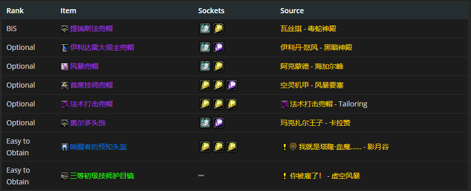头部装备首选提瑞斯法兜帽,附魔推荐强能雕文