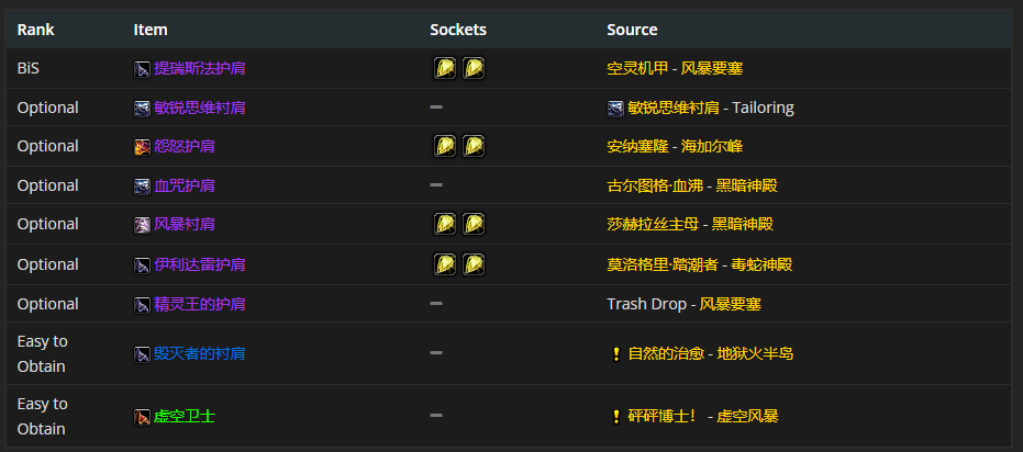如果要选肩部装备的话,提瑞斯法护肩是首选。至于附魔嘛,强力戒律铭文或者强力宝珠铭文是比较推荐的。