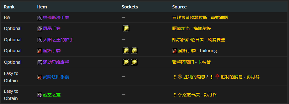 要是挑选手腕装备的话,崩坏护腕是首要之选。而说到附魔的话,附魔护腕 - 法术能量是比较推荐的。