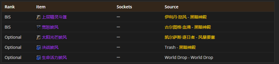 要是选披风装备的话,上层精灵斗篷是首选。至于附魔嘛,推荐附魔披风 - 狡诈。
