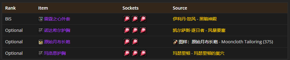 要是挑选胸部装备的话,雷霆之心外套是首选。对于附魔呢,推荐用附魔胸甲 - 特效精神。