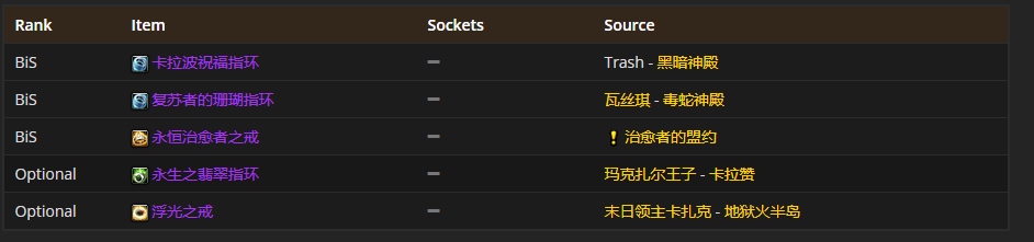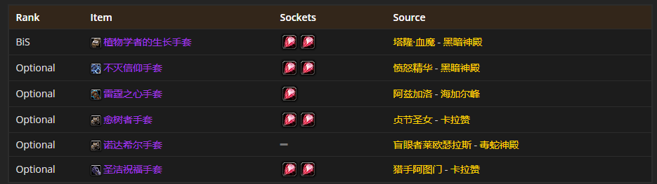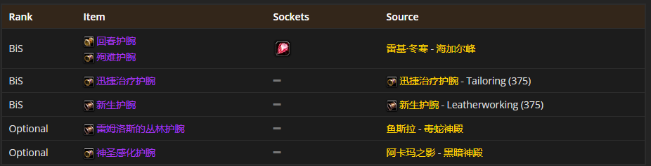 手腕装备的话,回春护腕和殉难护腕是首选。至于附魔嘛,比较推荐附魔护腕 - 超强治疗。